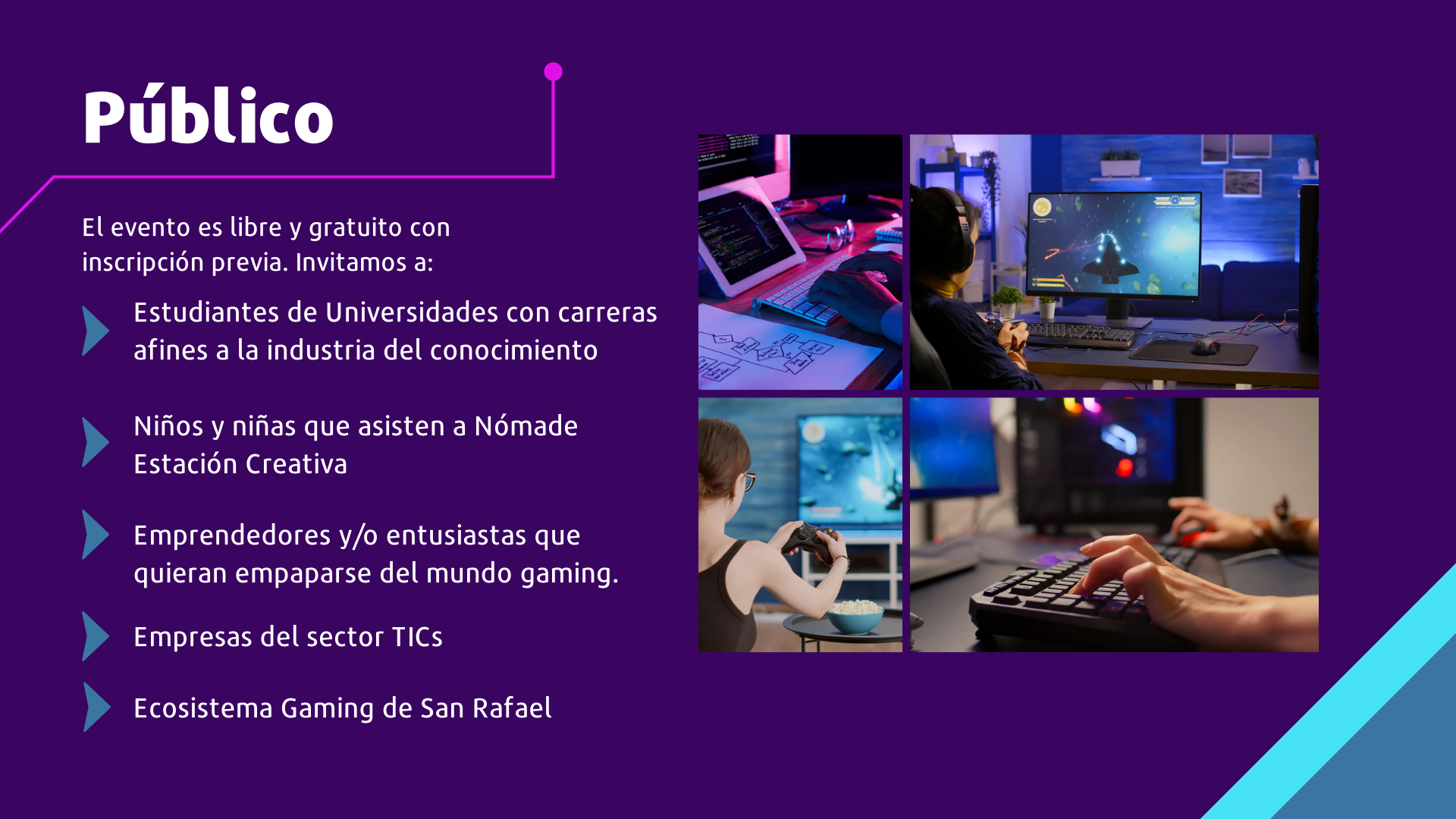 Tendrás la oportunidad de unirte a encuentros de networking que conectan con la comunidad de videojuegos en San Rafael. Podrás conversar con profesionales afines, intercambiar ideas y crear posibles colaboraciones para el futuro.