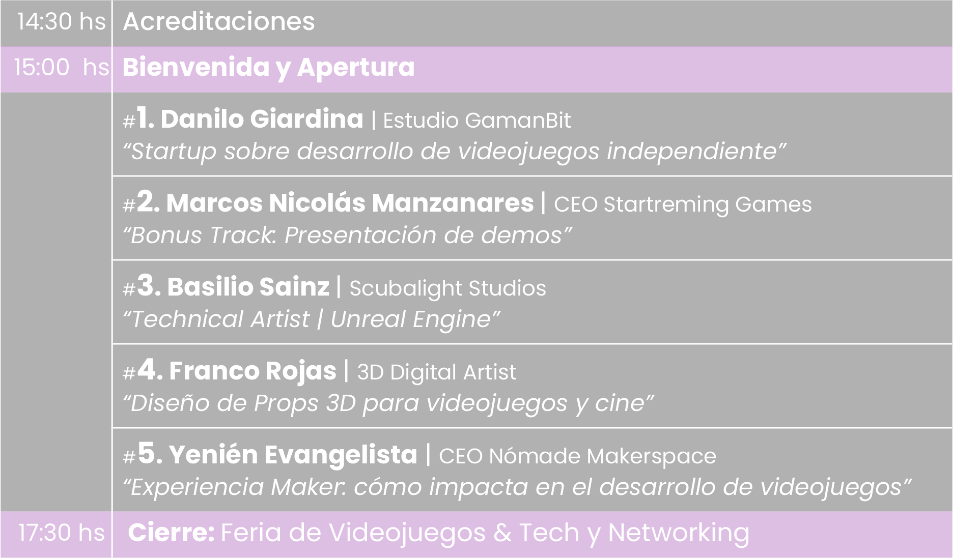 Se trata de charlas a cargo de referentes de la industria nacional, quienes comparten sus experiencias y transmiten contenido para enriquecer y motivar a interesados y adeptos de la industria del gaming.