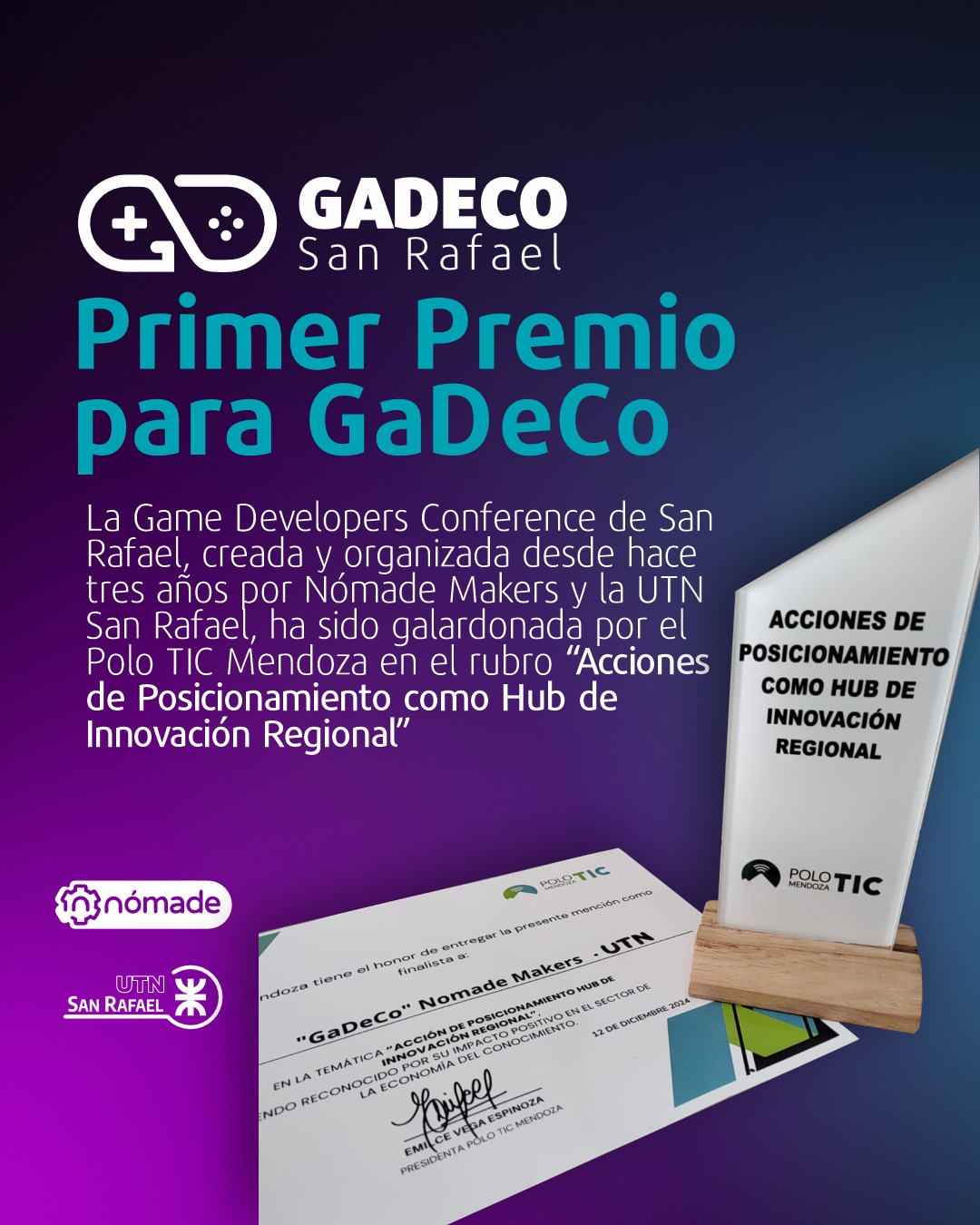 Cuarta edición de la «Game Developers Conference»– GADECO San Rafael, está orientada a reunir a referentes del desarrollo de videojuegos organizada por la UTN San Rafael y NOMADE Estación Creativa, en el marco de las actividades propuestas por el Polo de Innovación Tecnológica Mendoza Sur